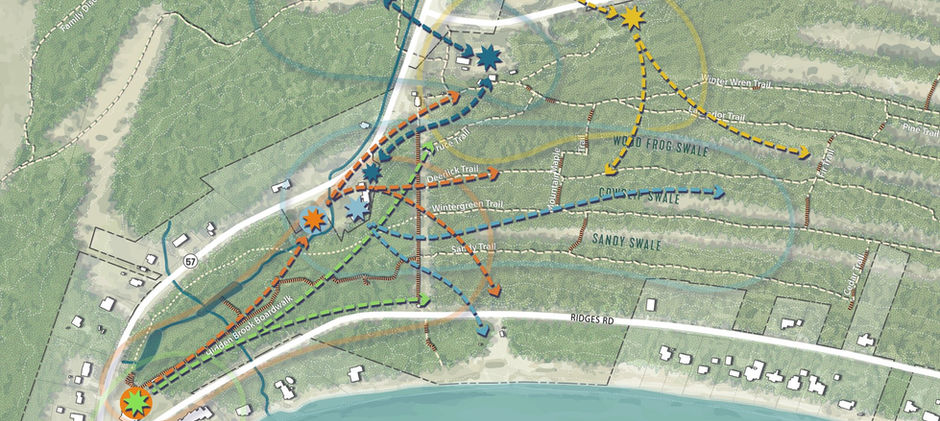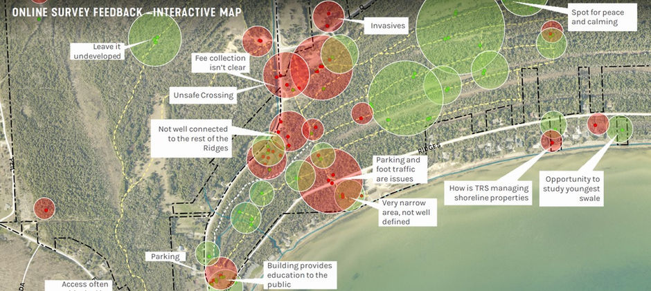It was critical to deploy an inclusive and transparent process with the flexibility to engage participants that were both locally based and regionally dispersed, sometimes varying by season considering Door County’s population and tourism dynamics. Further, TRS stakeholders and partners varied greatly depending on their focus on the individual mission pillars of research, education, and preservation, and required a nuanced approach to listen and share ideas with them. Door County’s tourism calendar posed unique process challenges and opportunities. Important engagement activities and milestones were carefully aligned with scheduled Ridges events and local programs during the primary tourist months, including the Festival of Nature, educational camps, and the annual member meeting. This maximized in-person engagement, especially for early site-based tours and on-site visioning.